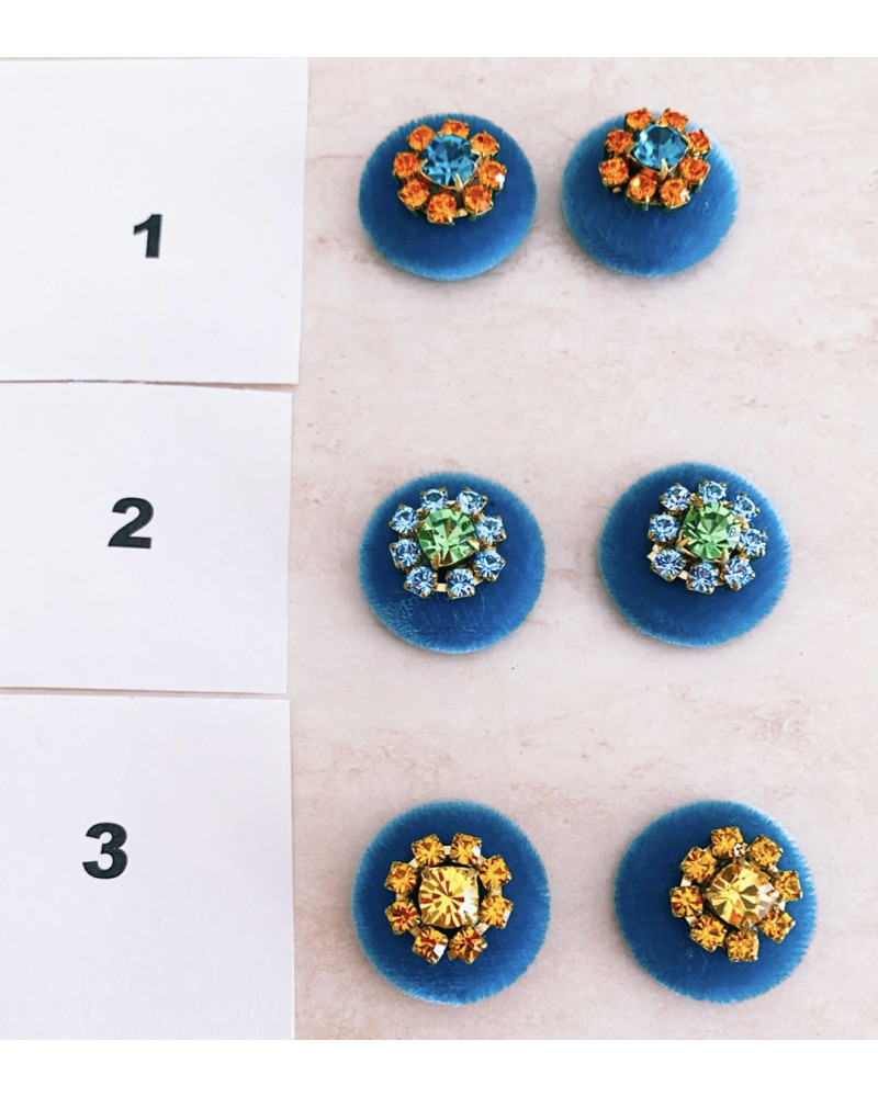 Bottoni senza asola in Velluto con decoro strass per orecchini - prezzo a coppia